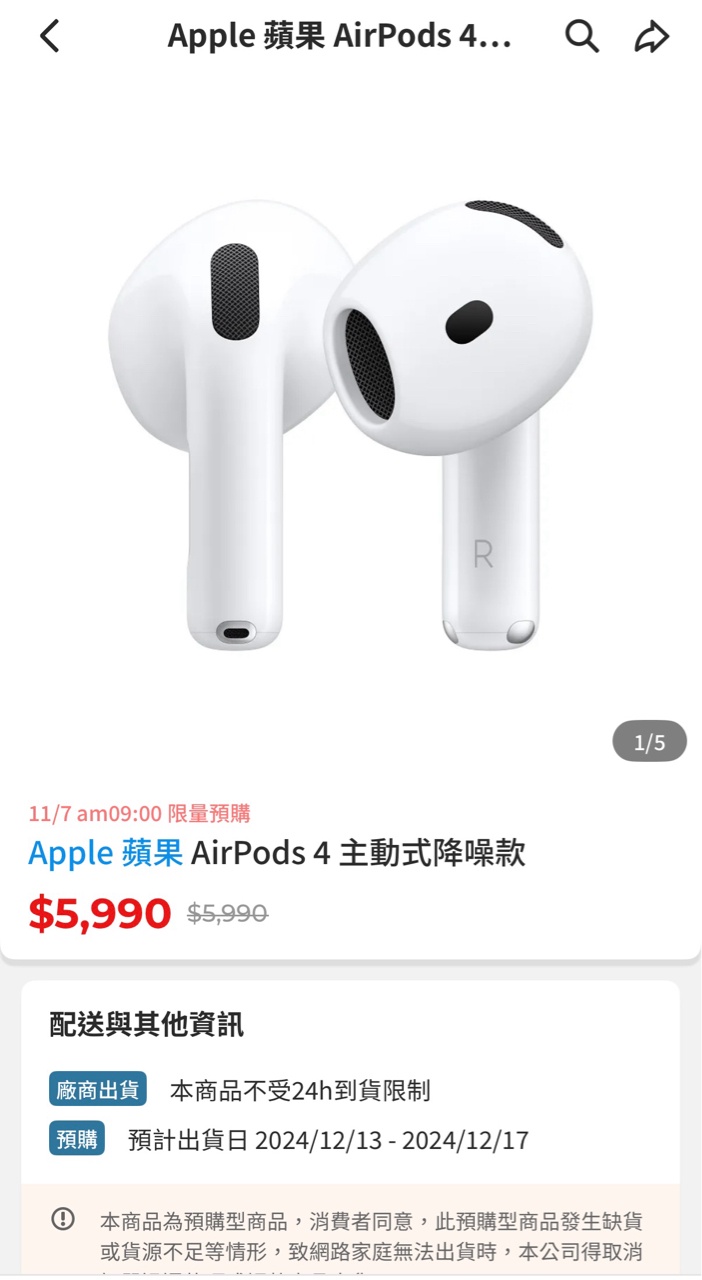 推 Ivan210: Airpods 4 在pchome 看到11/7預購 11/06 12:34