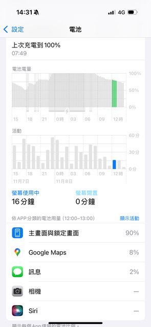 → kpg0427: 另外,按圖上的電池斜率來看,那一個小時內的電池電量的11/08 15:37
