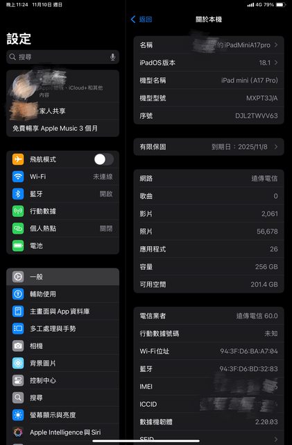 標題[心得] 日版 IPAD MINI A17Pro WIFI+行動網路 開
