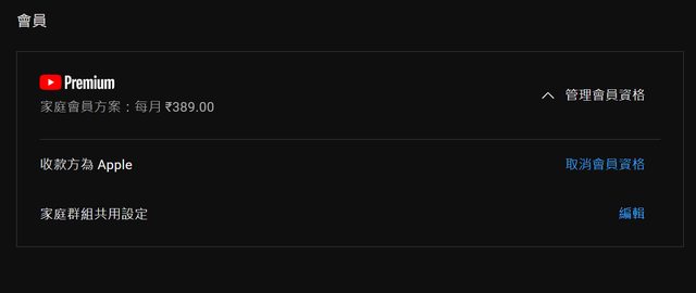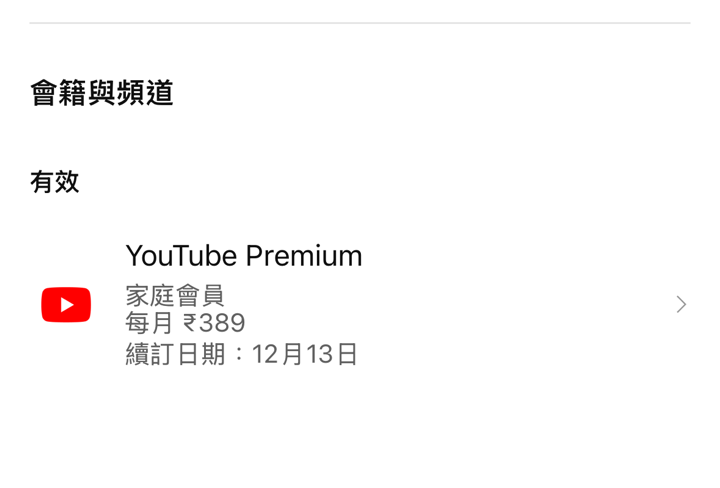 推 l98: 設定 -Apple 帳戶 -訂閱項目,就可以知道你 YouTube Premium11/13 21:32