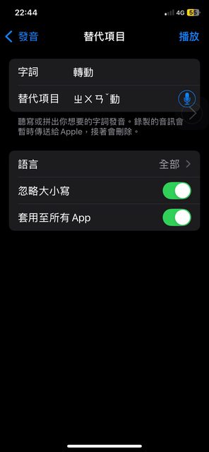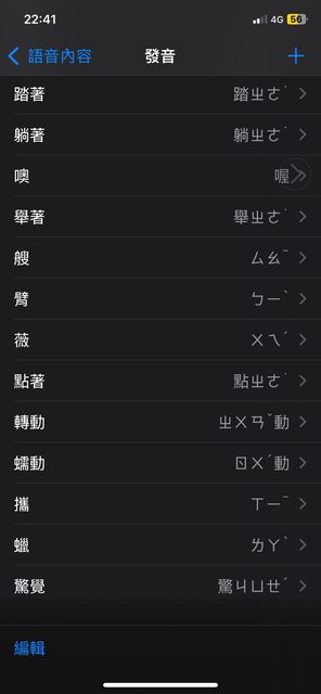 以前有在輔助使用→語音內容→發音裡