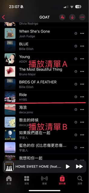 代女友詢問,她的apple music近期發生兩次播放清單A中的歌莫名跑到播放清單B內但同