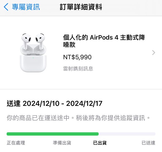 推 atidify: 11/27訂有刻的,一樣今天出貨 11/29 17:11