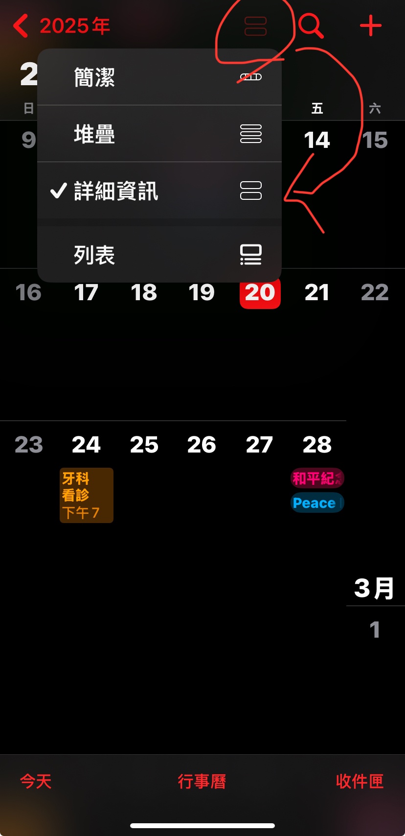 → ageminis: 如果有升級到 iOS 18 ,內建行事曆右上角的漢堡選單可以 02/20 03:24