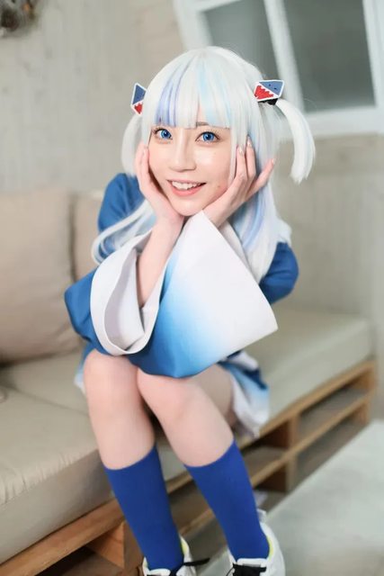七澤米亞喜歡變裝,來台打扮成虛擬YouTuber噶嗚古拉。鄭孟晃攝