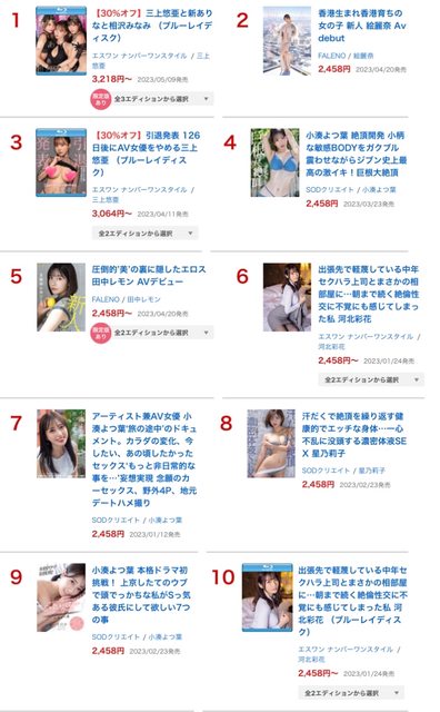 來看上半年的AV實體銷售排行榜 港女絵麗奈的出道作 獲得廣大港民支持 出道作銷售就拿到了第二名 (不過第二部就沒在前100名了) 打敗了三上悠亞、河北彩花、小湊よつ葉等強者 只輸了三上悠亞的三人共演作 https://i.imgur.com/dbNWUeK.jpg