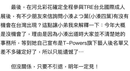 fack3170: 小湊四葉也沒邀來啊 說是當時名單做確認 小湊也還沒公 07/07 20:59