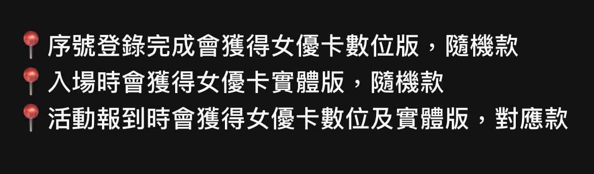 → avgirl: 入場隨機給卡片,預約到什麼女優給什麼女優的卡片 07/25 10:17