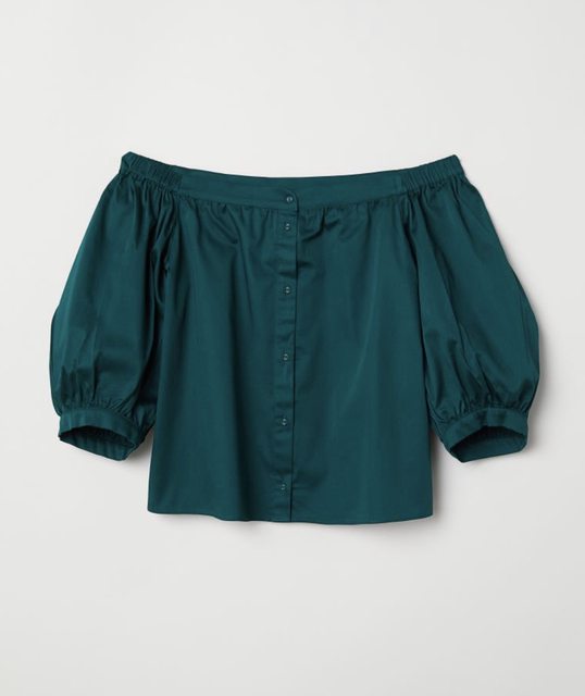 然後穿深綠色的露肩裝