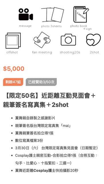 → makisuki: 其實應該募資結束了,硬要推一個沒寫真集的閹割版見面會03/01 18:36