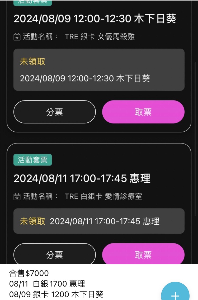 → MILKTEALOVE: 售8/10 小那海銀卡套票 07/28 15:08