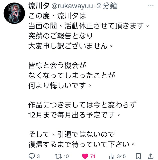 到12月的時候都會有新作 然後不會引退 ——— 可是感覺起來要消失一陣子了...... -- ※ 發信站: 批踢踢實業坊(www.ptt-site.org.tw), 來自: 111.82.251.219 (臺灣) ※ 文章網址: https://www.ptt-site.org.tw/japanavgirls/M.1721898544.A.D52