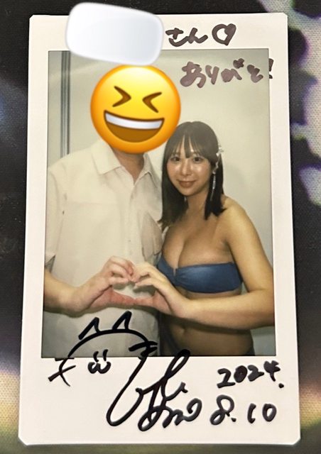日向一族都不簡單啊,這身材太暴力了,引力太大我就被吸過去了,我知道這位但是沒有買他的作品,本人當時拿著QR code在宣傳社群帳號,當時展場時間已經快結束了,看了看手機還有券可以用就選擇跟日向合照+簽名拍立得,整個過程都是很溫柔地在跟你互動,幫我們拍照的是日本攝影師,效果挺好的,還可以署名。回家馬上下訂日向的寫真…
