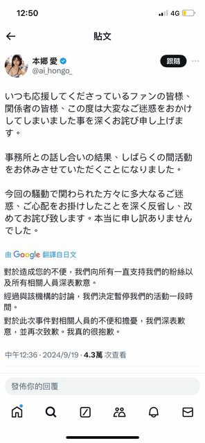 → alex813: 洋洋得意,還都有4萬多人左右人跟播 就知道女方多弱勢了 09/19 13:12