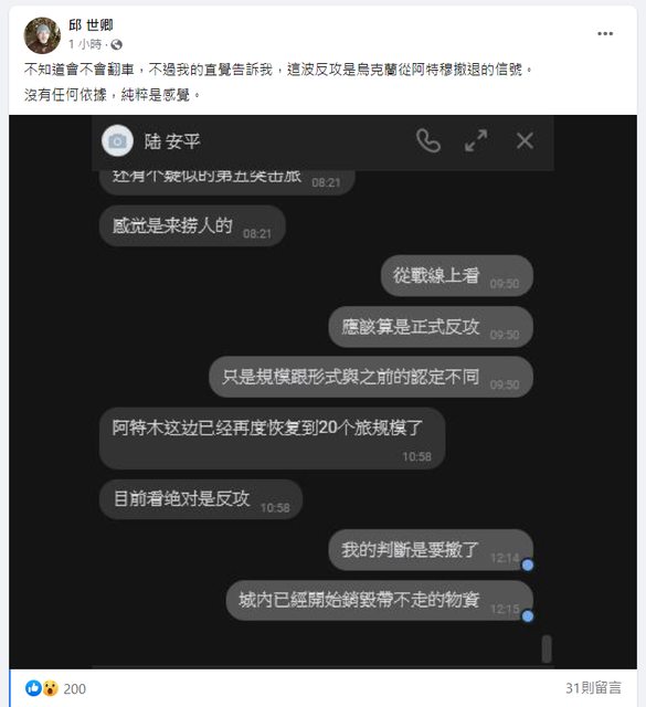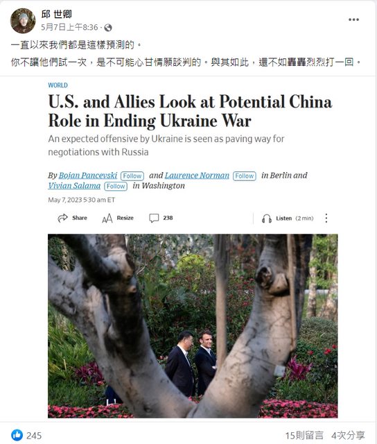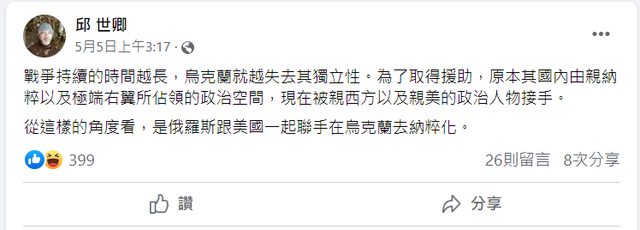 推 junkuo : 邱世卿就是大量看親俄telegram、俄媒和微博消息, 05/12 14:22