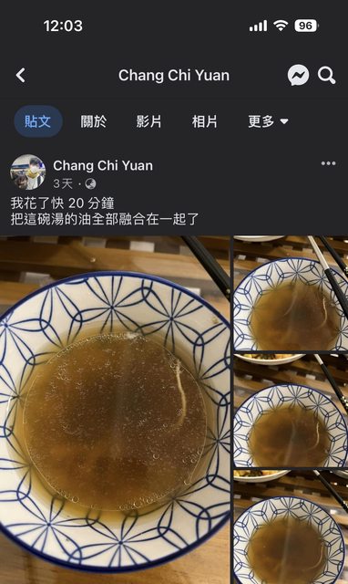 推 g5978gyy: 我沒有在釣魚 我是在把湯的油全部融合在一起 06/26 15:09
