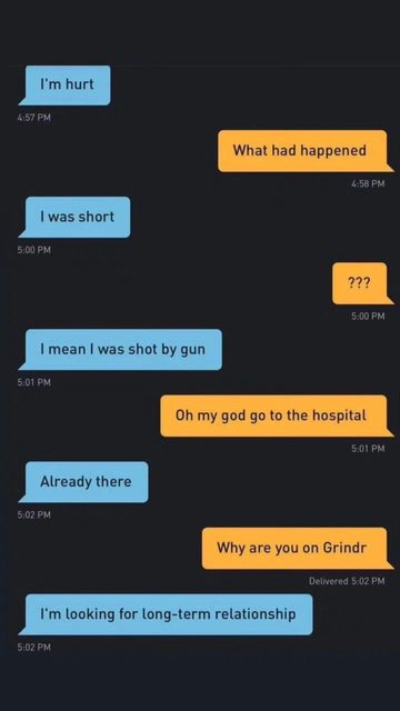 這……都被槍射進醫院了還要用Grindr真是……