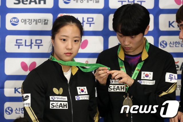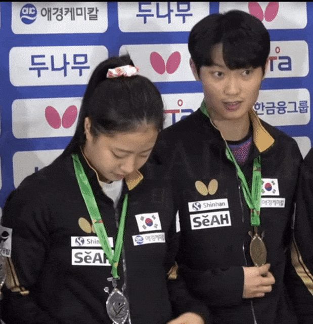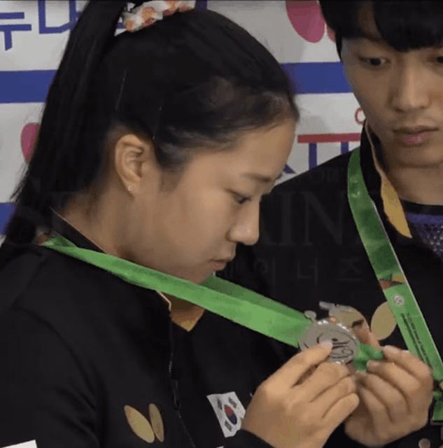 申裕斌19歲,世界排名第八 這屆亞運女單銅牌,混雙銅牌 觀眾要求 https://i.imgur.com/9Z8pWNH.gif