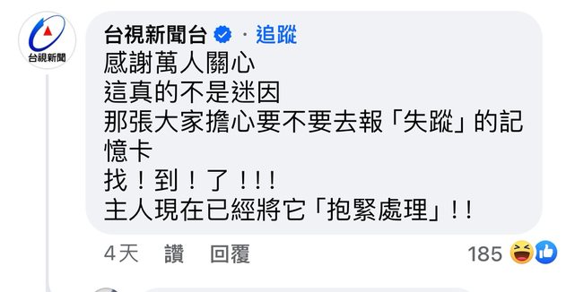台視小編後來有留言說找到記憶卡了