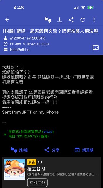 ※ 發信站: 批踢踢實業坊(www.ptt-site.org.tw), 來自: 36.224.108.37 (臺灣)