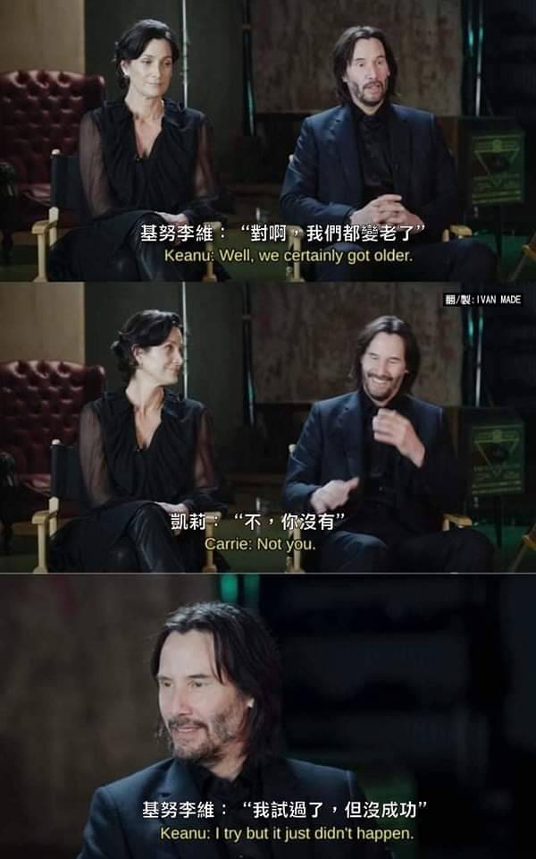 就是基諾里維跟matrix 女主角Carrie Anne Moss在對談