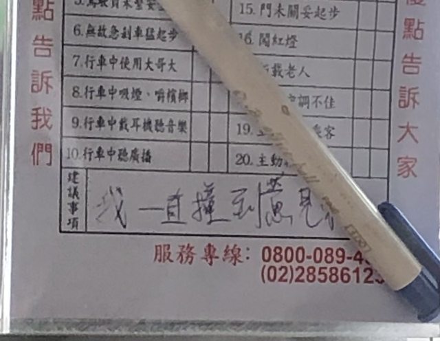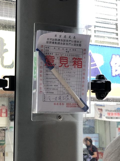 搭公車時看到窗戶旁邊的意見箱裡第一張客訴寫著