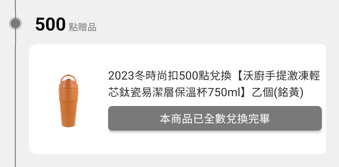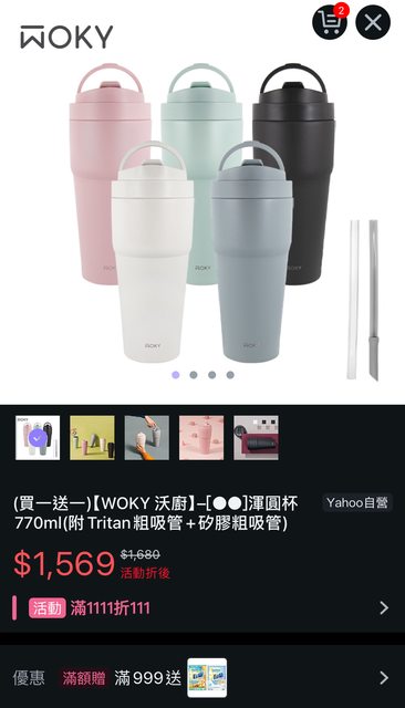(買一送一)【WOKY 沃廚】–[●●]渾圓杯770ml(附Tritan粗吸管+矽膠粗吸管) 活動折後$1,569 算起來平均一個$785 https://reurl.cc/9RAWZV WOKY品牌慶 歡慶雙11 滿1111現折111 https://reurl.cc/Zyd2QM 二代渾圓杯的杯蓋有改良比較不會漏水 剛看還有3色 ---- Sent from BePTT on my iPhone XR -- ※ 發信站: 批踢踢實業坊(www.ptt-site.org.tw), 來自: 180.218.126.131 (臺灣) ※ 文章網址: https://www.ptt-site.org.tw/Lifeismoney/M.1699954891.A.8E6