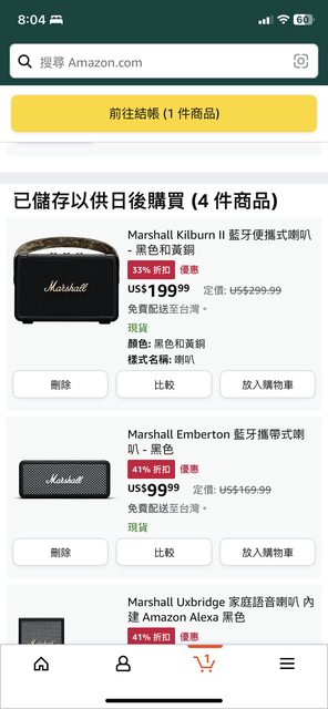 請在Amazon app搜索Marshall 有黑五的特價 刷星展滿150折20美 DBS20 考慮買那台199的,有aptX https://i.imgur.com/j3gp0RJ.jpg
