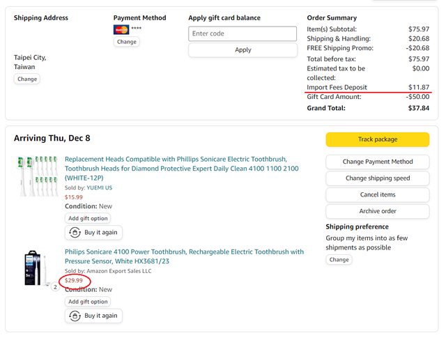 感謝原po,借去年的分享回文。 目前美亞的特價又開始了。 一樣是$29.9,三色都有特價。 https://www.amazon.com/gp/product/B09LD7WRVS 去年購買,使用近一年的感想是真的比手動刷牙乾淨的多,之後應該都會持續使用電動牙 刷。 但電池衰退的幅度也非常有感! 官方說明是二週充電一次,但最近我每週都得充電。 看美亞上網友的心得,使用約一年半電池就壽終正寢。 有打算購買的人再請列入評估。 ※ 引述《boycher2000 (Cold)》之銘言: : 新款4100終於特價$29.9了,白色一人限買三支 : https://www.amazon.com/gp/product/B09LD8T445/ : 我自己是2支+刷頭湊免運直送台灣,繳關稅比轉運划算 : 依照之前版友經驗2支會超過兩磅,有錯誤請糾正 : https://i.imgur.com/SEfIxct.png