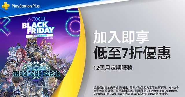 11/27 前加入 PlayStation Plus 的玩家可以最低 7 折優惠價訂購 12 個月會員方案 https://i.imgur.com/OED9OUw.jpg