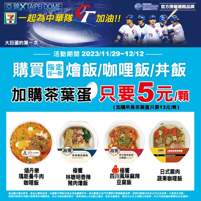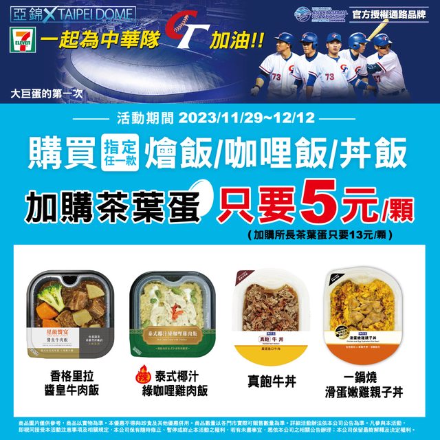 大巨蛋 亞錦賽下周要開打 7-11推出破蛋優惠! 這樣不知道是不是會觸霉頭 XD 下面這些買品項加購茶葉蛋 折5元! https://i.imgur.com/5VEc4Hd.jpg