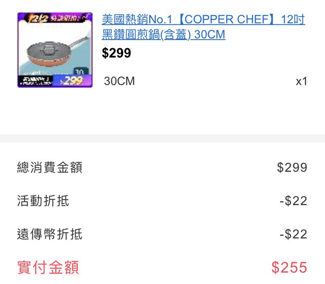 friDay購物 COPPER CHEF 30公分煎鍋含蓋$299 如果有遠傳幣還可以兩倍放大 https://i.imgur.com/CNLt1ZH.jpg