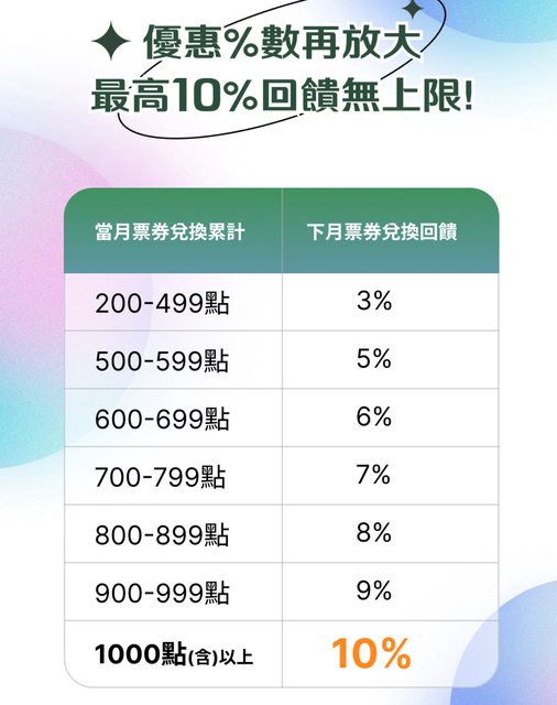 個人儘量都是 每個月5號 換1000點 可以得到50元7-11券 然後下個月又會回饋10% https://i.imgur.com/BHW41T0.jpg