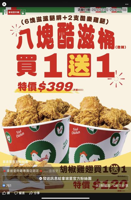 → weeafterwork: 好划算,拿坡里的炸雞真的很好吃124.155.169.109 12/03 13:17
