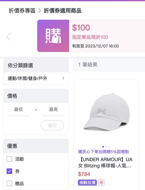 今天是UA做活動 部分商品價格可以再領券折 https://i.imgur.com/gNTeUxT.jpg