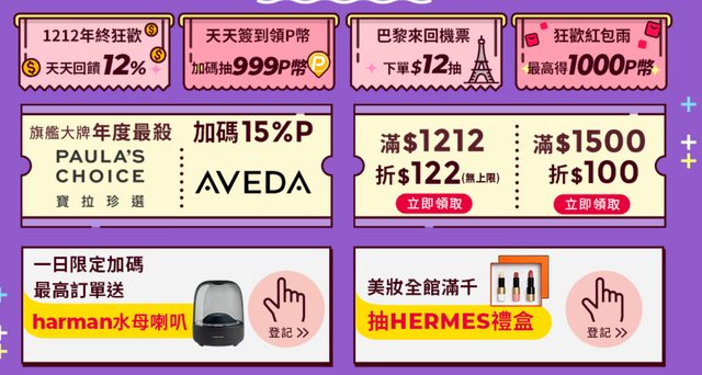 1、美妝一日加碼回饋15%P幣