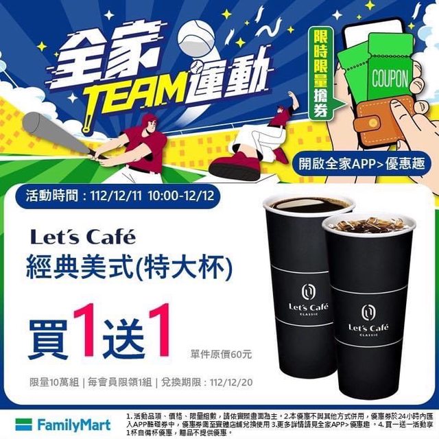 【活動時間:112/12/11 10:00-12/12】 Let’s Cafe經典美式(特大杯)買1送1 領券: https://bit.ly/3R04DK5 app領 https://i.imgur.com/CwEADob.jpg