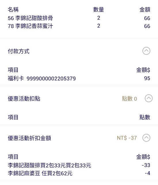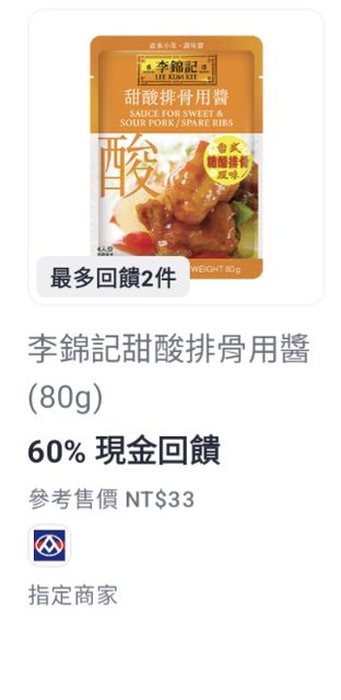 shopback 本週發票回饋 李錦記甜酸排骨用醬有60%回饋 結帳時看明細發現全聯有活動兩包33 變成買兩包不用錢還倒賺6.6 https://i.imgur.com/ZPPrn8i.jpg