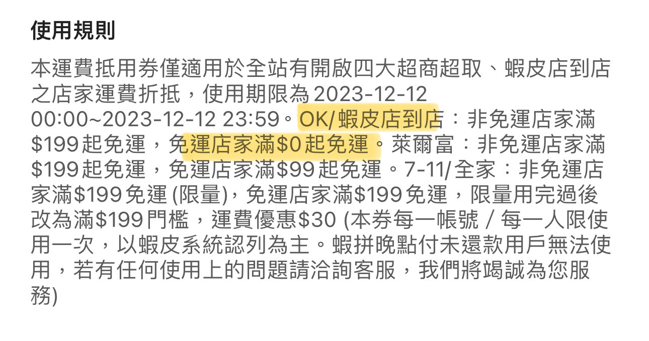 → Dosk: OK/蝦皮店到店 免運店家滿$0起免運 1.171.200.156 12/12 14:21