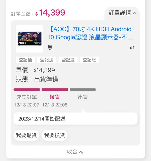 推 ludashi: 感謝告知,下單一台,幫家裡客廳換掉55" 125.229.145.30 12/14 22:09