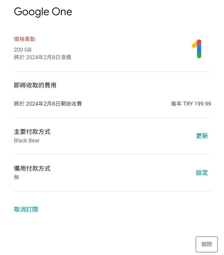 l98: ?網頁訂閱 Google One 或 YouTube Premium 只185.189.163.214 12/14 22:44
