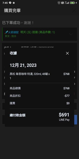 上次九月用完七折券買了48罐, 讓我這三個月上班中午都睡不著, 撐到現在差不多喝完了,真的是上班好夥伴, 今天想說來補貨一下發現又有優惠, 雖然沒有之前七折那麼爽, 但折扣下來還是比其他通路便宜, 48罐768搭配九折券691 九折券期限到12/24而已 https://i.imgur.com/w5K16Ie.jpeg