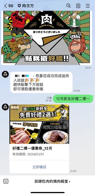 加入Line就送小菜優惠券 使用期限到明年一月底 https://lin.ee/PbQO7pj 然後現在還有一番賞活動 成功邀請就可以再多拿一張小菜券 我領到的是扇貝 期限到明年二月底 https://i.imgur.com/aE7th1H.jpg