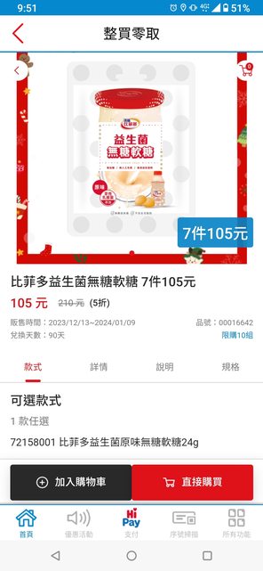 萊爾富app Hi-Life VIP到2024/1/9前 整買零取頁面 比菲多益生菌無糖軟糖7件105元(5折) 平均一包15元 實際上效果如何請自行去網路搜尋相關比較及評價 一包有8顆軟糖 上面寫限購10組不過我昨天買1組10次後今天還是可以繼續買 我覺得以現在的物價來說這個價位還不錯啦 無糖吃起來也是沒什麼負擔 -- ※ 發信站: 批踢踢實業坊(www.ptt-site.org.tw), 來自: 1.200.30.182 (臺灣) ※ 文章網址: https://www.ptt-site.org.tw/Lifeismoney/M.1703642530.A.E88