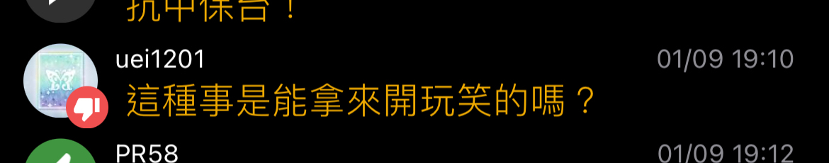 噓 uei1201: 這種事是能拿來開玩笑的嗎?114.33.34.20 01/09 19:10