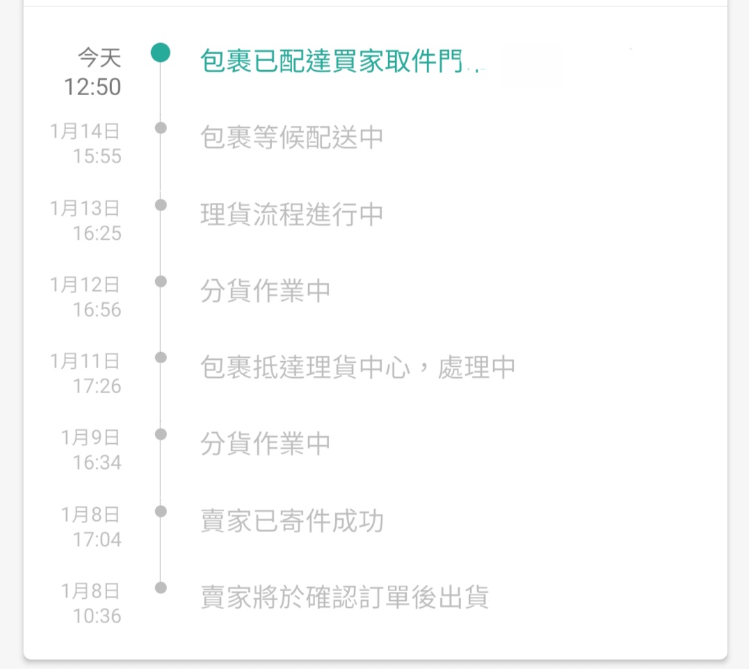 → jaychou421: 進度還卡在等候配送中,我上一件商品 101.137.203.36 01/15 10:36