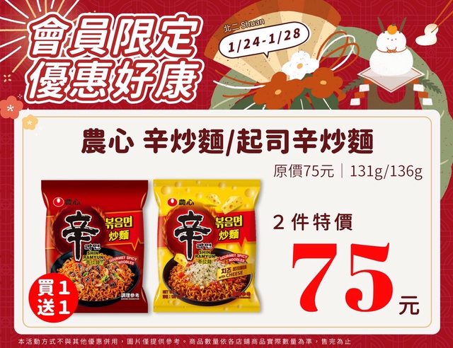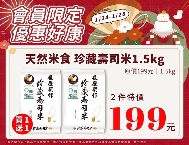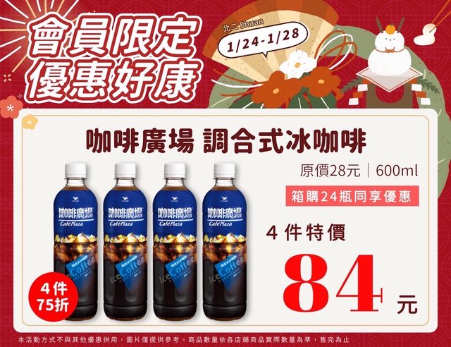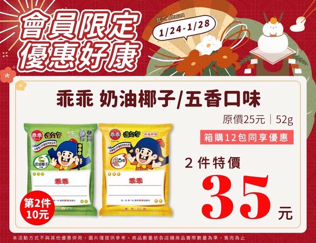【活動名稱】:會員限時優惠 【便利商店/廠商名稱】:全家 【活動時間】:2024/01/24~2024/01/28 【活動內容】: https://i.imgur.com/oEff35L.jpg