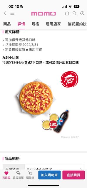 zardmih: 謝謝分享 不過必勝客有些品項漲價覺得很 111.82.187.72 01/29 19:54