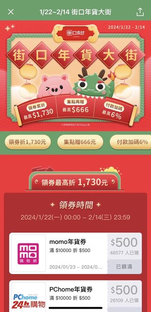 → sam200002: 南門市場用台灣PAY+元大帳戶50%,更殺 60.245.118.95 02/02 15:56