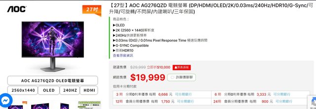 推 Wechael: oled 還240hz 這價格還可以啊 喊貴的是 101.136.36.156 02/05 17:18